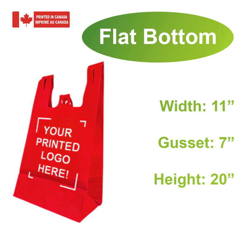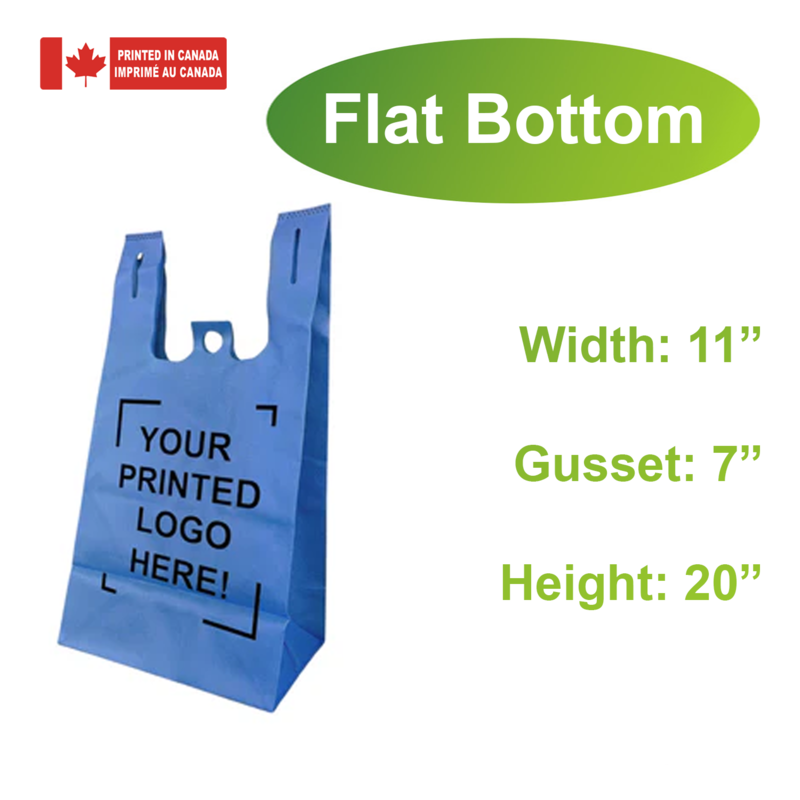 200pcs Non-Woven Reusable Shopping Bags – 11x7x20x7 Inches, Flat Bottom, 1-Color Print, Made in Canada