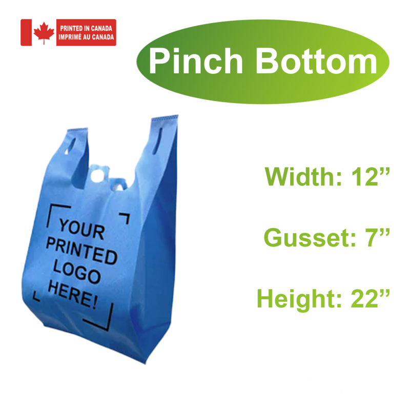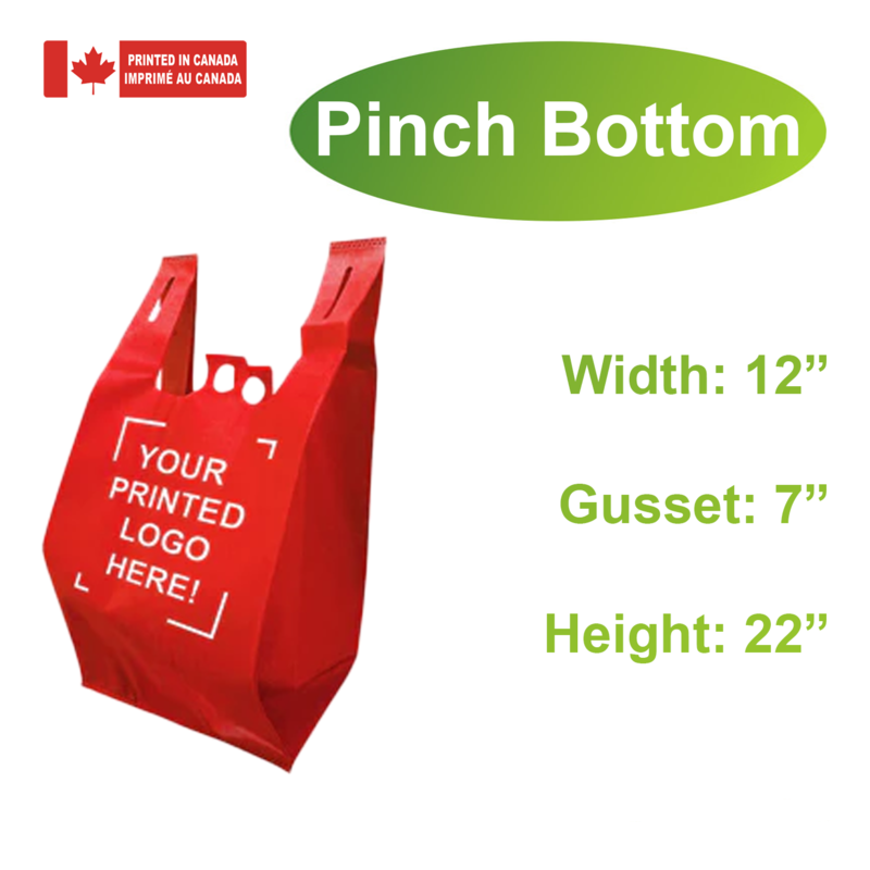 200pcs Non-Woven Reusable Shopping Bags – 12x7x22 Inches, Pinch Bottom, 1-Color Print, Made in Canada