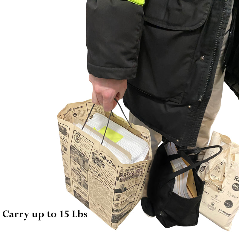 - Unique Vintage Aesthetics: Made with attention to detail using upcycled newsprints and coffee news flyers, each of our gift bags with handles is unique, featuring a superb vintage newspaper design that your customers will love!