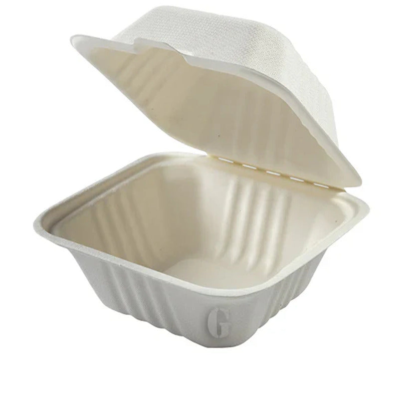 Sugarcane Bagasse Container, 6x6x3 Inches, (Regular), #500 pcs, White