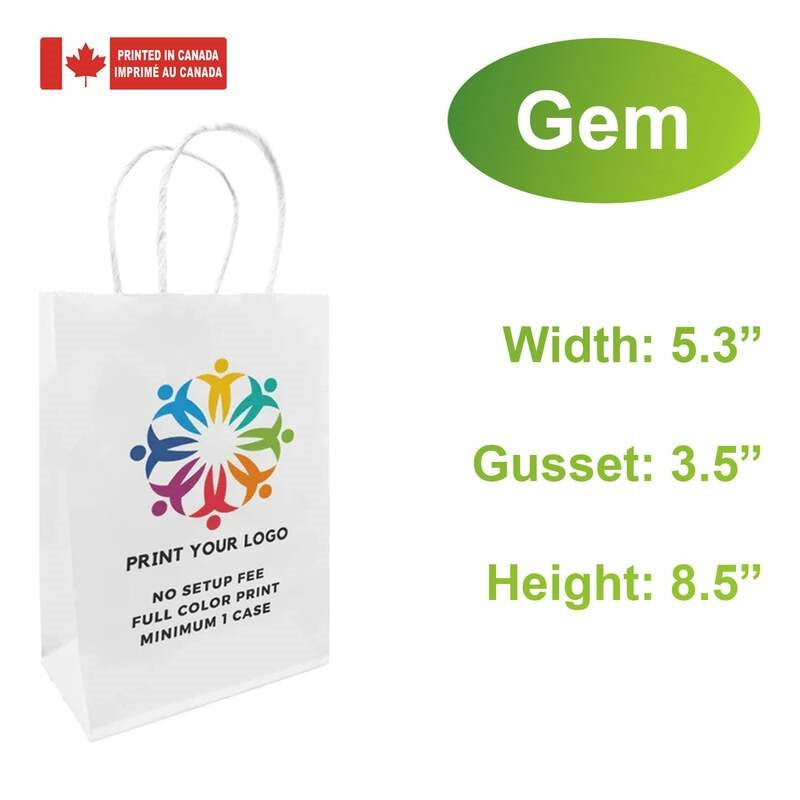 Logo Printing for White Paper Bags: 5.3 * 3.5 * 8.5 Inches