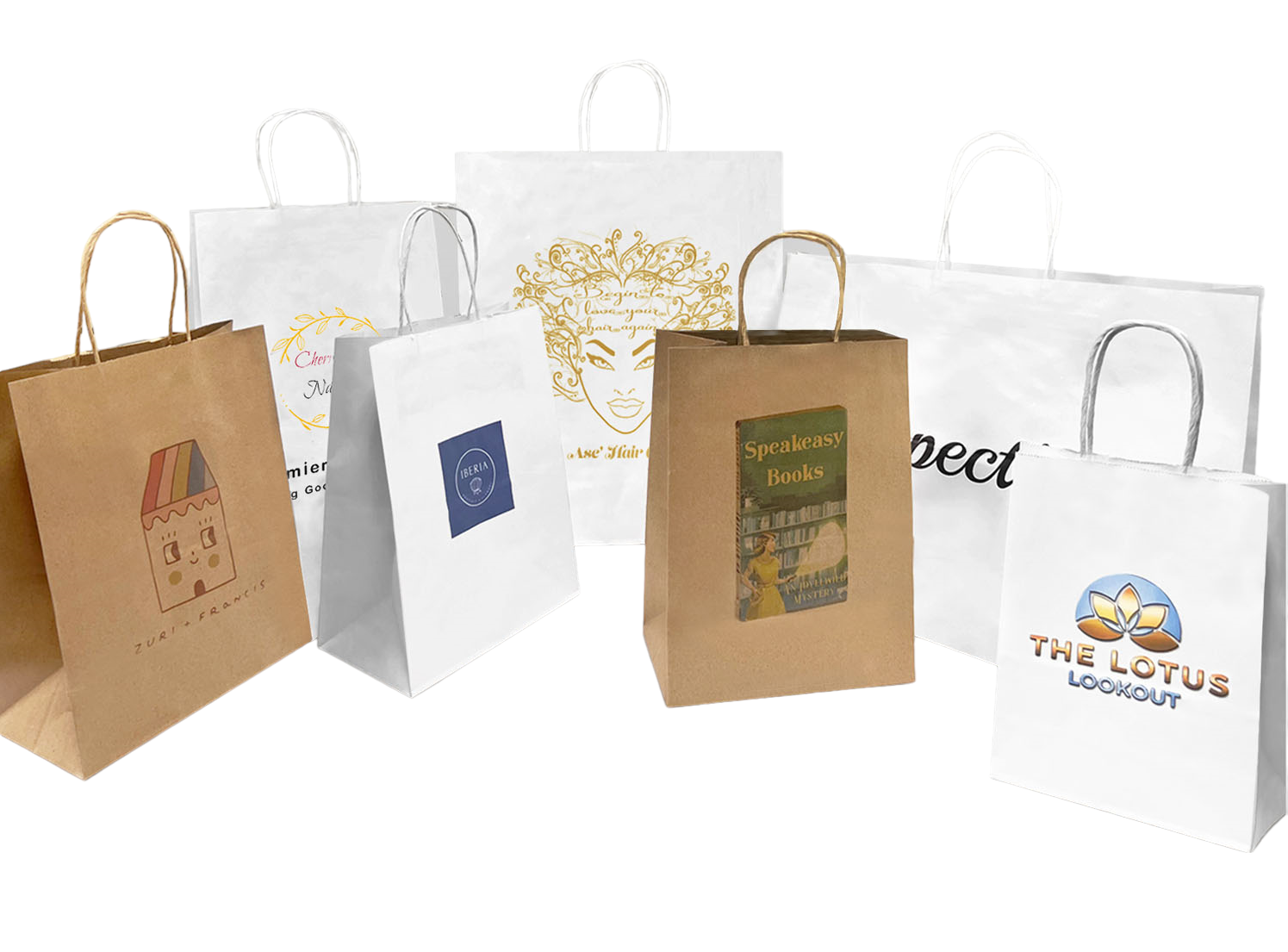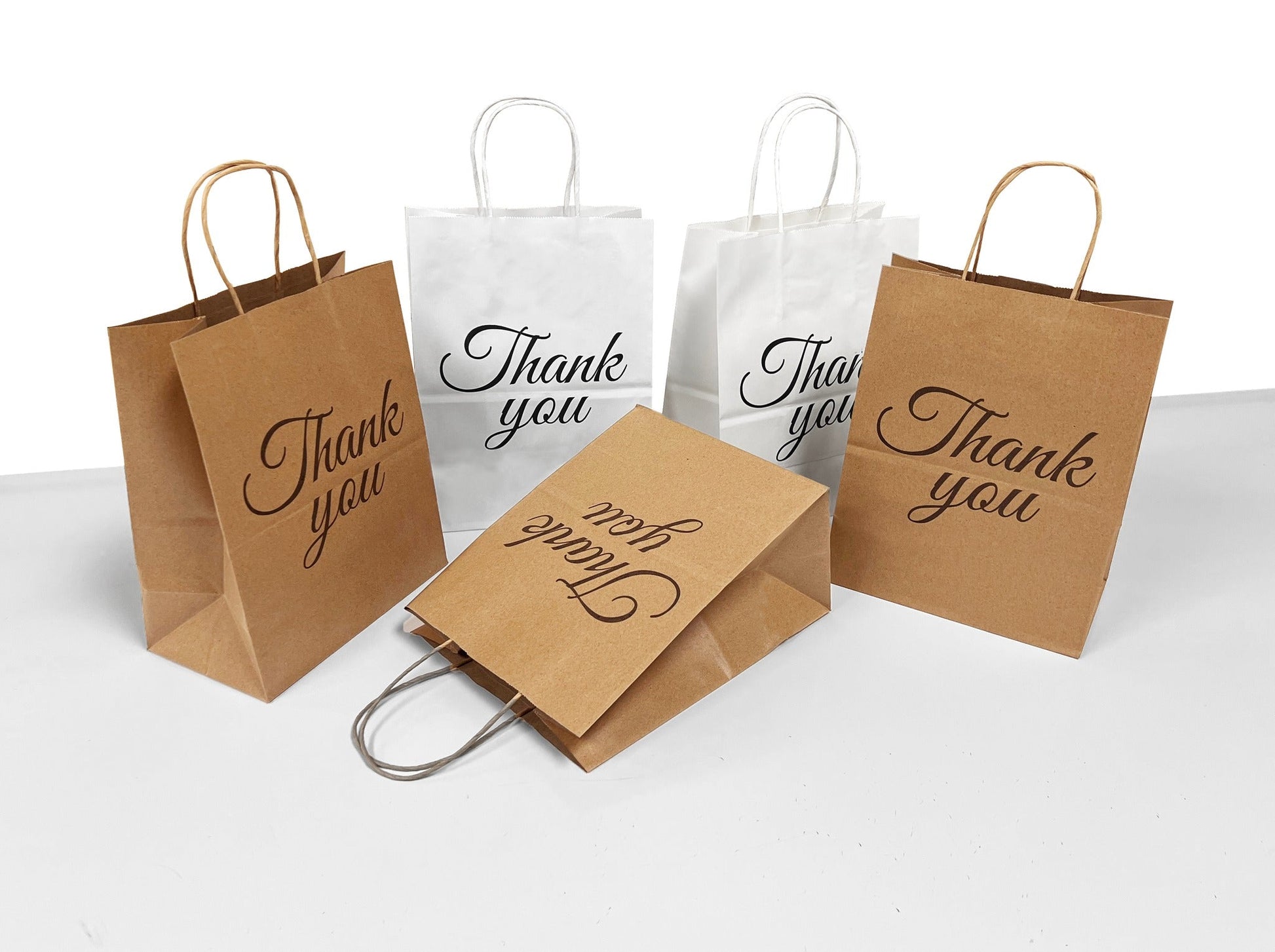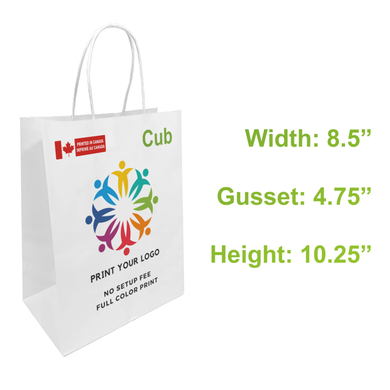 Logo Printing for White Paper Bags: 8.5x4.75x10.25 Inches